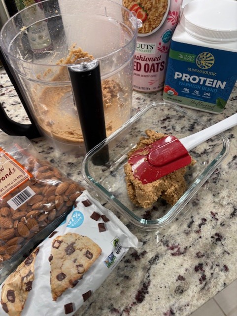 - Add oats and protein and pulse until mixed